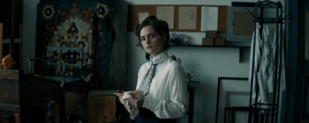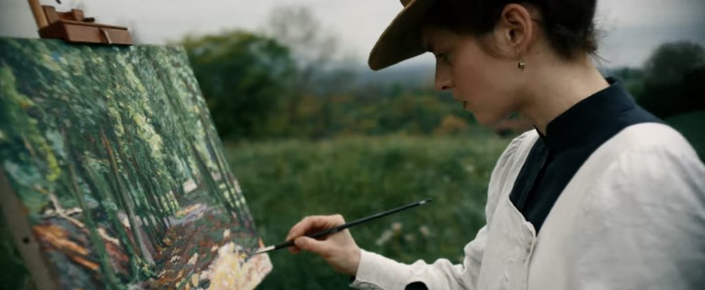 Локализованное название обманчиво настраивает зрителя на байопик Кандинского, в котором Габриэле (Элле) Мюнтер отведена разве что роль музы. Но режиссеру Маркусу Розенмюллеру интересна непосредственно фигура Эллы: история начинается с художественных метаний мечтательницы и заканчивается разбитым сердцем. Василий - человек, который то появляется, то исчезает из жизни Мюнтер. Сердцем фильма до последних кадров остается Элла, глазами которой и показана грустная история любви. Подающая надежды художница уносится за Кандинским в богемный мир, который обещает и признание, и тихое счастье. Возможно, роль музы в паре отведена не Элле, а Василию, а может, им обоим: партнеры бок о бок пишут на природе, стремятся обновить художественный язык и так или иначе влияют на стили друг друга. Главная же претензия к фильму заключается в том, что мы едва ли узнаем об особенностях работы Мюнтер: окружающие то и дело восклицают о таланте героини, но экспрессионистские искания остаются за кадром, в центре сюжета - токсичные отношения, в конце концов сломившие бунтарский дух немки.