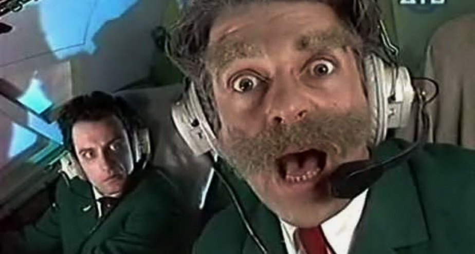 Во второй части начинается шоу «Крутое пике» из «Каламбура». В роли Командора - уже знакомый вам плакатный лётчик, в роли второго пилота Дринкинса - молодой и неопытный китайский второй пилот, в роли радиста Морзе - какой-то третий китайский пилот, вообще не предусмотренный в экипаже Airbus. Ну а в роли мисс Бурпл - какой-то толстый китаец.