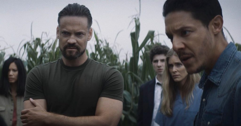 ВПЕЧАТЛЕНИЯ И АКТЕРЫ: группа незнакомцев просыпается непонятно где, без понятия, как они сюда попали и почему они здесь. Звучит знакомо? Но это отправная точка «Побега с поля» (оригинальное название), нового триллера от режиссера-новичка Эмерсона Мура и его соавторов Шона Уотена и Джошуа Добкина. Сюжет, мягко говоря, но новый, но Мур хорошо справляется. Кукурузное поле - это удивительно экономичный способ сделать фильм, вызывающий клаустрофобию. Любой, кто когда-либо оказался между стеблями и початками, знает, как легко там потерять ориентацию и почувствовать себя отрезанным от всего мира. Это чувство изоляции особенно действует ночью, особенно когда герои понимают, что рядом с ними кто-то или что-то есть.
