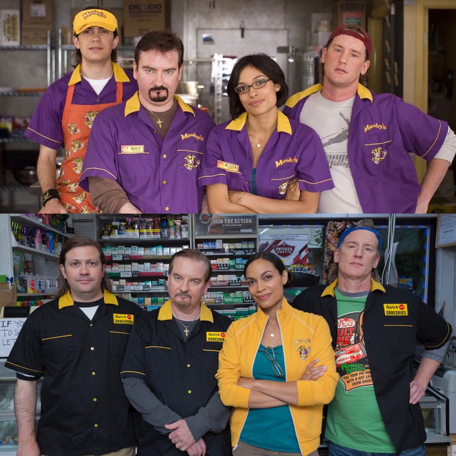 О ЧЕМ КИНО: спустя пятнадцать лет после того, как Данте Хикс (Брайан О'Халлоран) и Рэндал Грейвс (Джефф Андерсон) купили магазинчик Quick Stop Groceries, их жизнь продолжается как прежде, включая хоккейные игры на крыше и тусовки с Джеем и Молчаливым Бобом (Джейсон Мьюз и Кевин Смит), которые превратили соседний видео-салон в легальную точку по продаже марихуаны. Данте все еще оплакивает смерть Бекки (Розарио Доусон) после того, как ее сбил пьяный водитель много лет назад, и порой дух Бекки появляется перед ним. Однажды у Рэндала случается тяжелый сердечный приступ. После операции врач убеждает Данте поддерживать Рэндала в хорошем настроении. Выздоравливая, Рэндал делает вывод, что потратил свою жизнь впустую и ему нужна новая цель. Он решает снять фильм о себе и Данте, об их магазинчике. А вместо актеров пригласить своих друзей и постоянных клиентов торговой точки…