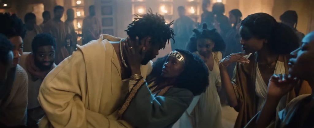 Режиссер Джеймс Сэмюэл, очевидно, очарован своим антиисторическим миром, и уделяет достаточно времени для неторопливых, случайных комических эпизодов. Например, кальянная, где посетители, под кайфом от экзотической, но очень знакомой на вид продукции, буквально парят в воздухе, или крытый ночной клуб. где бедра красоток коллективно двигаются под песню The Jones Girls «Nights Over Egypt». А Иисус (чернокожий Николас Пиннок) выглядит здесь как супергерой из блокбастера - движением руки разбивает летящие в него камни и залечивает раны прикосновением!