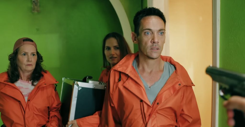 Вместо того чтобы сделать «Команду уборщиков» прямолинейным, мрачным триллером, сценарист Мэтью Роджерс и режиссер Джон Кейес создали то, что в пресс-релизе называется «необычным, веселым боевиком, полным адреналина и смеха». Большая часть юмора в этой комедии исходит от игры Антонио Бандераса в роли эксцентричного, цитирующего Макиавелли, криминального босса. Габриэль не сыгран Бандерасом как карикатура, он просто немного странный. Это тот тип личности, когда ты достаточно силен, чтобы люди говорили тебе то, что тебе нужно услышать, но далеко не так умен, как ты думаешь. Алекс (Джонатан Риз Майерс) резко контрастирует с ним, когда оказывается в ситуации, в которой ничего не смыслит. Что касается Шивон и Чака, то у них есть несколько собственных секретов, о которых мы узнаем после того, как Меган возьмут в заложники.
