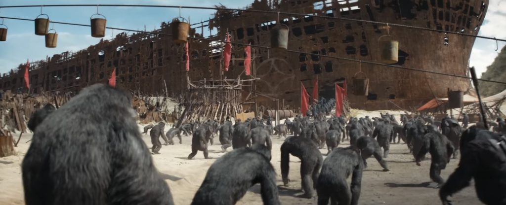 В «Царстве», прибрежной колонии Проксима Цезаря, множество порабощенных обезьян трудятся в тщетных попытках взломать огромный железный свод. Проксимусу рассказывал об истории человечества представитель этого избегаемого вида, Треватан (Уильям Х. Мэйси). Проксимус убежден, что хранилище содержит всю информацию и технологии человечества и считает, что доступ к нему укрепит его власть и ускорит эволюцию обезьян. Ноа к этому времени уже воссоединился с соплеменниками и решает помешать плану Проксима Цезаря, уничтожив хранилище и его содержимое. Но выясняется, что у «дикарки» Мэй есть свои собственные планы на этот счет…