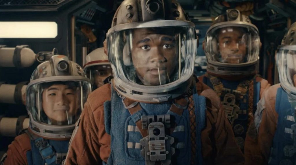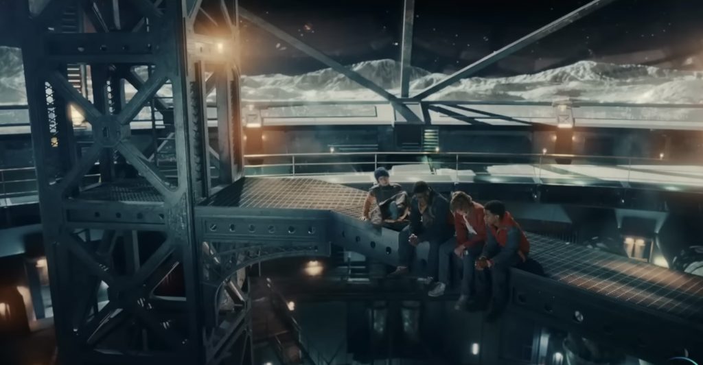 Уже начало картины задает драматический тон. Приближается метеоритный дождь, над лунной колонией закроется щит и друзья не смогут выехать к кратеру. Им удалось достать коды охранной сигнализации через Эддисон (Маккенна Грейс), поскольку ее отец, ученый, имеет доступ ко всему. Маккенна Грейс получает роль, которую больше всего заслуживает - у нее есть что играть. Эддисон приехала на Луну вместе с отцом после тяжелого развода и единственная из компании видела Землю а не росла в замкнутом сообществе колонии. Один из друзей говорит даже: «У земных людей разные судьбы. Они… они странные!»