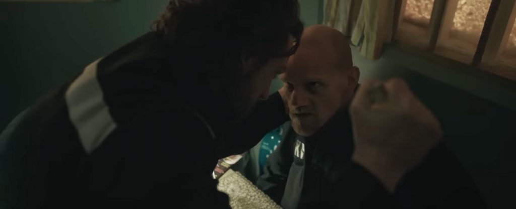 О ЧЕМ КИНО: стартует «Крейвен-мисливець» на скованном льдом Русском Севере. Сергея Кравиноффа (Аарон Тейлор-Джонсон) этапируют в отдаленную колонию для опасных преступников, осужденных пожизненно. Буквально через несколько минут главный герой заявляет своему соседу по камере, что пробудет в исправительном учреждении максимум три дня. И Кравинофф не врет: оказывается, внутрь охраняемой тюрьмы он проникает лишь с одной целью. Он намерен убить криминального авторитета Семена Черного (Юрий Колокольников). Что и делает довольно старомодным способом - с помощью клыка из головы тигра в камере Семена (не спрашивайте, откуда она там взялась). После экшен-эпизода с побегом из колонии, в котором Кравинофф ползает по стенам и караульным вышкам, зрителя ждет предыстория...
