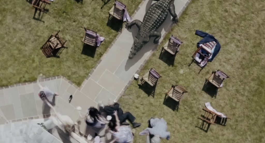О ЧЕМ КИНО: Лиза Кинг (Сиан Олтмэн) выходит замуж, и ее отец Дилан (Марк Халдор) не только нашел для прекрасное место для свадебной церемонии - старинный особняк в стиле Тюдор. Ему ещё удалось приударить за симпатичной селянкой. По приезду Лизу беспокоит отсутствие сотовой связи, а также жуткие истории о пропаже местных жителей, которые заставляют испуганно вскрикивать подружек невесты. Кроме того Чарли (Джордж Нетлтон), ее жених, заставляет одну из них, Джорджи (Беатрис Флетчер), кричать или, вернее, стонать по совершенно другой причине. Но вскоре у гостей возникают большие проблемы - на территории поместья появляется папа кровожадных крокодилов…