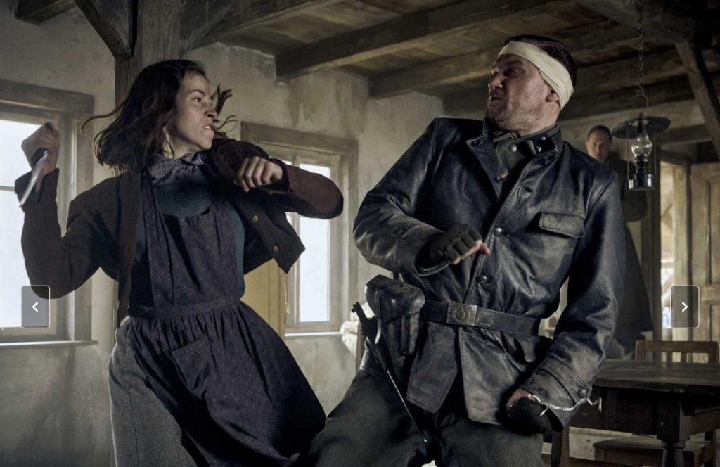 При этом «Кровь и золото» - это не комедия в духе советского «Крепкого орешка» - здесь много всякого происходит и маленькая деревушка становится ареной настоящей битвы. Недаром  мировая премьера состоялась на фестивале Fantasy Filmfest Nights 2023 и зрители приняли фильм очень хорошо. «Кровь и золото» - зрелище жесткое. Полчища нацистов расстреливают, режут, раздавливают, отравляют, сжигают и взрывают. Выглядит это настолько ужасно и чрезмерно, что назвать такие сцены «мультяшными» будет не столько критикой, сколько простой констатацией факта. Картину 1968 года «Там, где гнездятся орлы» Роберт Земекис описал словами  «тот фильм, в котором Клинт Иствуд убивает больше парней, чем кто-либо другой в истории кино», но теперь, сравнению с опусом Петера Торварта, он кажется образцом тонкости.