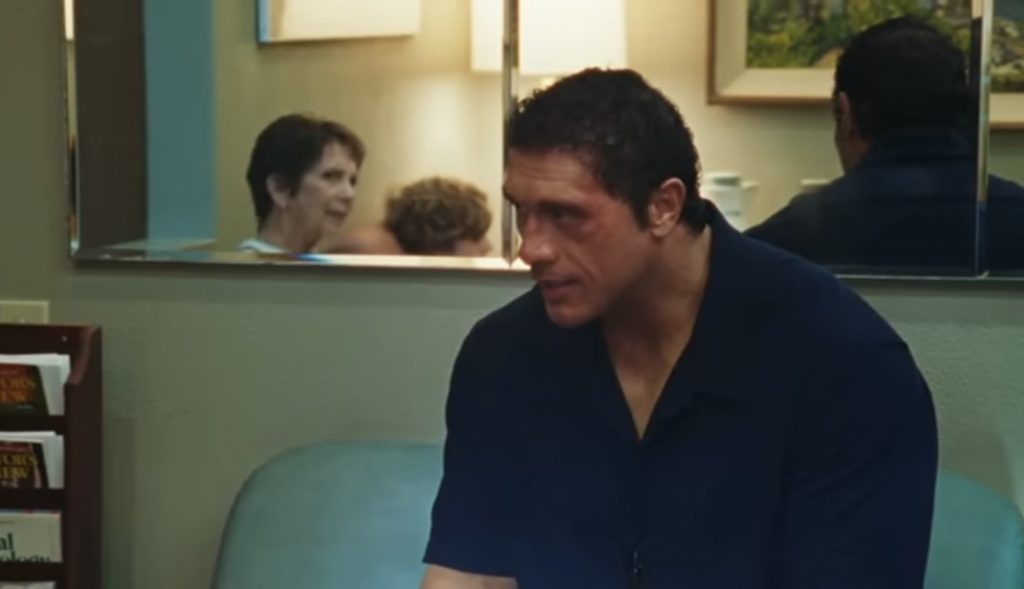 ВПЕЧАТЛЕНИЯ И АКТЕРЫ: Марк Керр мечтал о карьере рестлера, но оказался на ринге смешанных единоборств, а затем выступал на турнирах UFC. В этот момент в 1997 году зрителям и представлен внушительных габаритов боец, который не знает поражений и даже гипотетически не может вообразить, каково это - проиграть? Выразительный монтаж, ламповые проморолики, стилизованные под 1990-е, и интервью сразу выставляют барьер - перед нами медийная личность и образ, сочиненный для публики. Позу бескомпромиссного громилы с большим сердцем подпитывает и случайная встреча в комнате ожидания перед кабинетом врача: Керр с улыбкой объясняет даме в возрасте, почему у него расквашено лицо, и дает автограф внуку собеседницы (и его брату, который будет очень рад). Портрет неуправляемой силы на ринге и тотальной обходительности за его пределами рушится, когда миссис Керр (Эмили Блант) добавляет не то молоко в коктейль - все, разумеется, приходится делать самому с едва скрываемым раздражением….