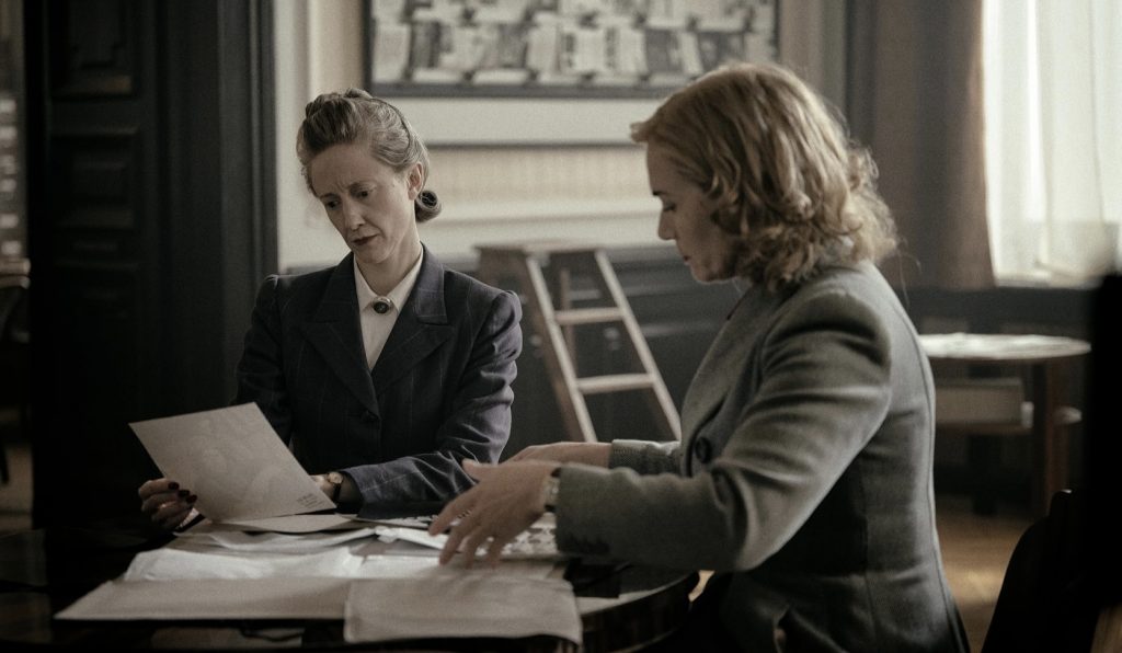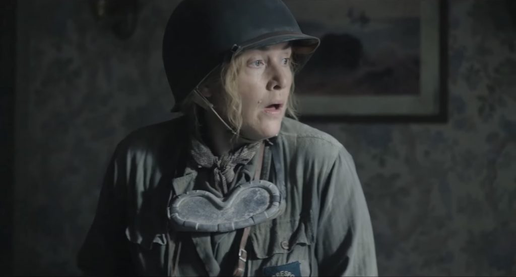 Ли еще в конце 1920-х, во времена работы с сюрреалистом-фотографом, сама стала создавать снимки. После начала самой страшной войны в истории человечества Миллер, работавшая на журнал Vogue, становится военной корреспонденткой. Женщине-фотографу из-за гендерных ограничений того времени было нелегко даже доехать до фронта, не говоря уже о том, чтобы запечатлеть что-то на камеру. За время своей работы на фронте американка станет свидетельницей высадки союзников в Европе, первого применения напалма и освобождения Парижа. Лента расскажет и о том, как были сделаны одни из самых известных кадров авторства Ли Миллер. Среди снимков — фото освобожденных концлагерей, находившихся на территории Германии, а также фотоснимок мертвого офицера СС и автопортрет американки в ванной Гитлера. Созданию последнего посвящен достаточно длинный и запоминающийся эпизод во второй половине ленты…
