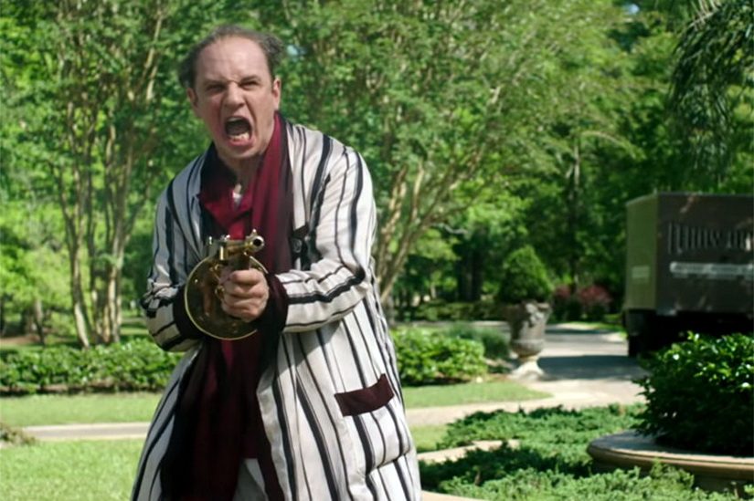 Тем не менее следом Джош Транк взялся за "Капоне". Видимо, рассудив, что кино про выжившего из ума мафиози, который в течение полутора с лишним часов гадит в штаны, курит сигары, стреляет по крокодилам из ружья и по людям из золотого автомата, а также бредит и ловит глюки, уж точно должно вернуть ему былую славу. Ну, или какими-то другими соображениями он руководствовался. Так или иначе, заручиться поддержкой Тома Харди было поистине здравой идеей. Потому что Том Харди даже в штаны гадит феноменально талантливо. Не говоря уже о сигарах и стрельбе по крокодилам.