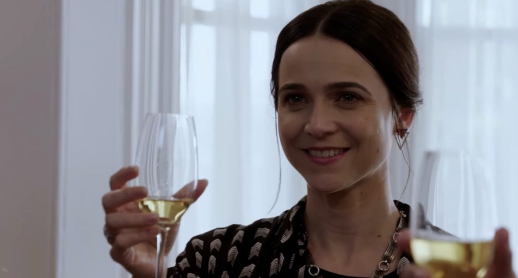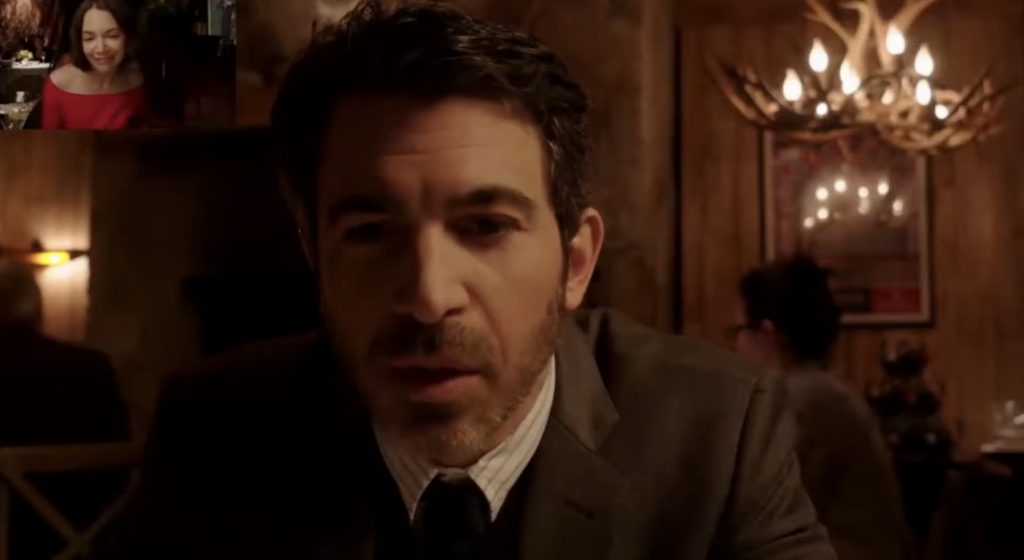 К слову, похожий сюжет и у первой из трех новелл «Любви». По нему супружеская пара, Джоэнн (Джоэнн Уэлли - «Убей меня нежно», экс-жена Вэла Килмера) и Джек (Крис Мессина - «Аферистка»), разделенная сотнями километров (или, если быть точнее, миль) - он занят на съемках фильма, она развивает своей едва появившийся бизнес - устраивают онлайн-свидание в ресторане. Разумеется, каждый в своем. Безусловно влюбленные друг в друга, они флиртуют, пьют вино и болтают по «зуму». Всё это мило - даже фривольный поворот в конце, когда Джоэнн приезжает к Джеку.