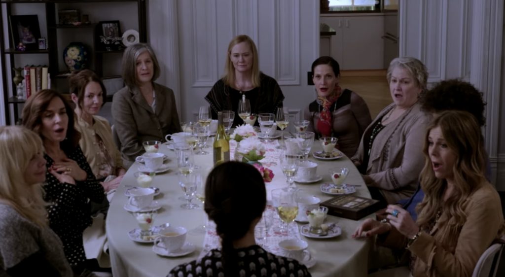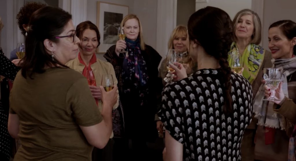 Самая содержательная третья новелла представляет собой поминки по Кэрол - писательнице, чья дочь Кэролайн (Майя Казан) собирает всех ее подруг. У каждой припасено по забавной, анекдотичной, а то и грустной истории, связанной с ушедшей. Слезоточиво, мелодраматично - одним словом, приготовьте ваши носовые платки. И немного забавно, главным образом оттого, что каждая героиня очень организовано, по очереди произносит свой монолог, который никто из десяти присутствующих не смеет прервать. Собственно, и сами реплики не настолько хороши, легки и остроумны, чтобы отвлечь от наличия ярко выраженного конфликта в истории (многолетняя обида Кэролайн на свою maman как по волшебству исчезает после одной из историй).