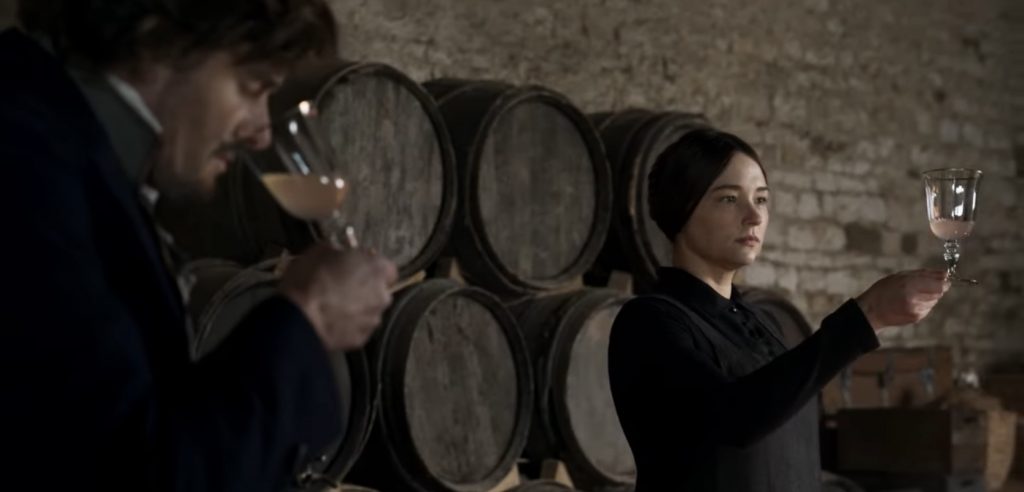 От продакшн плейсмента в картине Томаса К. Нэппера не уйти, ведь именно поэтому фильм «Мадам Клико» вообще существует. Но отношения супругов - это то, что делает его достойным просмотра. Как бы Барбе-Николь ни раздражали пузырьки в вине или испорченные бутылки, такие сухие деловые заботы просто не могут передать эмоциональную интенсивность ее взлетов и падений с любимым Франсуа.