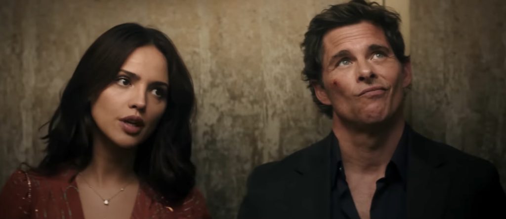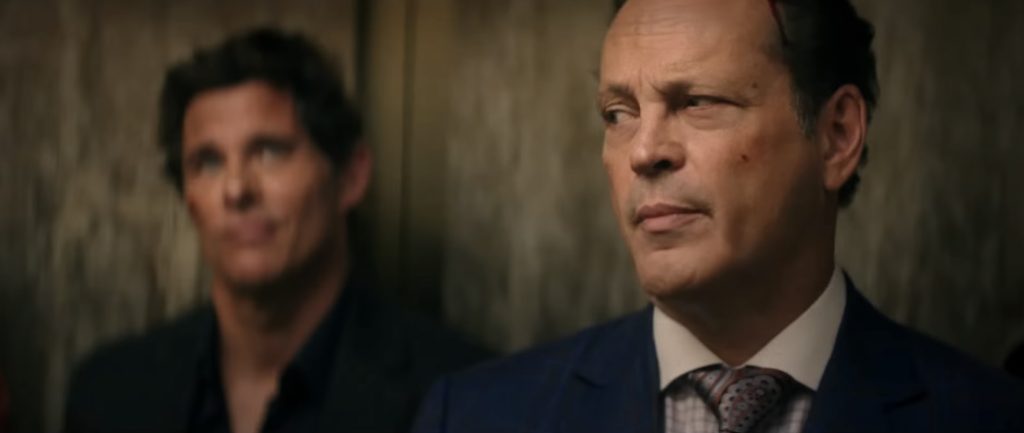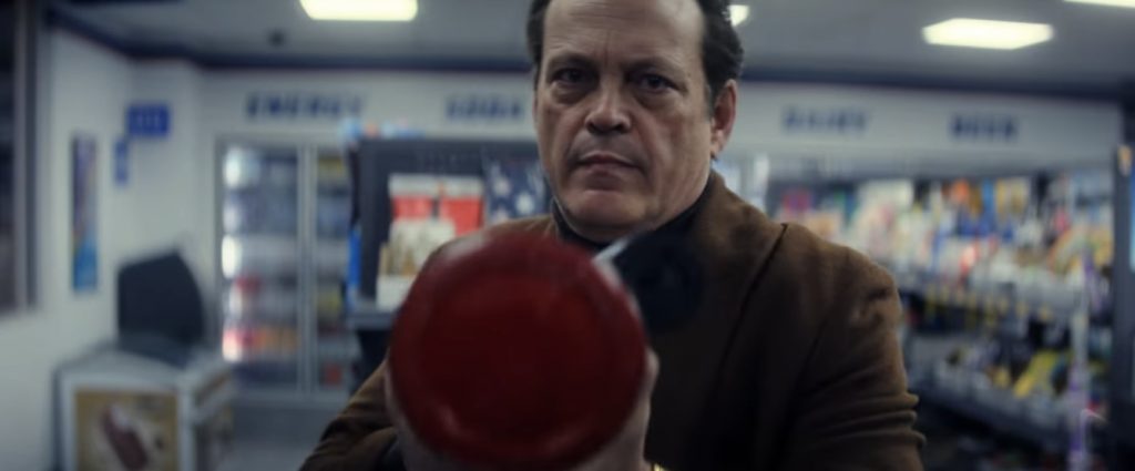 Дальше всё происходит примерно так, как и ожидалось: механически отмечаемый список пунктов, от очередной экшн-сцены под неожиданную поп-песню 80-х (Шина Истон, как и Бонни Тайлер в «Я иду искать 2») до группового пения всех персонажей («Don't Look Back in Anger» с участием обоих Винсов Вонов). И, что наиболее утомительно, быстрые перепалки на темы, которые обычно не ожидаешь от персонажей с оружием в руках (конфеты без сахара, эректильная дисфункция, кошачий мочевой пузырь и т.д.). Квентин Тарантино оказал влияние на многих режиссеров самыми разными способами, большинство из которых со временем потеряли будоражить, но чаще всего это проявляется именно в этом специфическом типе диалога, который он освоил более тридцати лет назад в «Бешеных псах» и «Криминальном чтиве». Но даже тогда Квентин понимал, что сам по себе этот простой акт неожиданного обсуждения недостаточно забавен, чего не смогли понять многие, многие, многие сценаристы после него. БенДэвид Грабински здесь сильно на это полагается, но, за исключением одного забавно серьезного и подробного анализа «Девочек Гилмор», все это слишком поверхностно и слабо проработано, чтобы произвести впечатление.