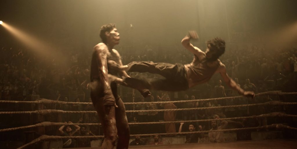 Зато бои поставлены впечатляюще и они неожиданно жестоки. Хоть иногда, в решающий момент, камера отворачивается, здесь хватает моментов, которые заставят вас нервно съежиться. Но и, помимо боев, в «Манкимэне» есть на что посмотреть. Фильм великолепно выглядит визуально, удивляет неожиданными эффектными ракурсами, а в головокружительной сцене погони чувствуется мастерство израильского оператора Шэрона Мейра («Врата тьмы», «Мистер Черч», «Немая ярость»). К этому добавляются резкие контрасты между захудалыми трущобами, в которых растет Кид, и высотными зданиями и роскошным клубом, где происходят разборки. Этот контраст присутствует и в содержании. Ведь «Манкимэн» сочетает в себе стандартную историю мести с острыми социальными комментариями, поскольку в фильме угнетенные восстают и бросают вызов деятелям полиции, религии и политиканам. Другое дело, что при хороших намерениях результат оказался не столь впечатляющим.