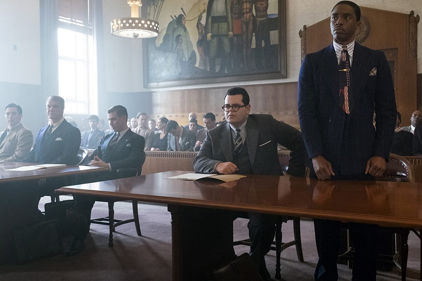 Похвалить хочется всё, но начать стоит прежде всего с юмора. Удивительно, ибо речь идёт об адвокатском процедурале с явственным морально-этическим посылом! Юмор тут работает на всех фронтах - одёргивает героев от пафоса, смягчает неловкие моменты, заполняет потенциальные паузы и просто не даёт зрителю приуныть от грязи прошлого столетия. И юмор этот не только уместный, но и классный, который можно назвать британо-американским. Но одними шутками сыт не будешь. И тут на помощь приходит сюжет, разгадать и предугадать который не так-то просто (а этим грешат 3/4 современных работ). Фильм играет со зрителем, заставляет перебирать пути развития дела или просто с нетерпением ждать появления каждой крупицы информации. А сюжет этот насыщают ещё и главные герои-адвокаты, которые так различны при детальном рассмотрении, но в целом весьма и весьма похожи.Из Чедвика Боузмана и Джоша Гада вышел отличный тандем...Также порадовали интересные режиссёрские находки, отличный монтаж и качественное воспроизведение антуража тех лет за счёт аутентичных костюмов, декораций и, разумеется, музыки. В атмосферу погружаешься с головой и ловишь лёгкий диссонанс при выходе из зала.