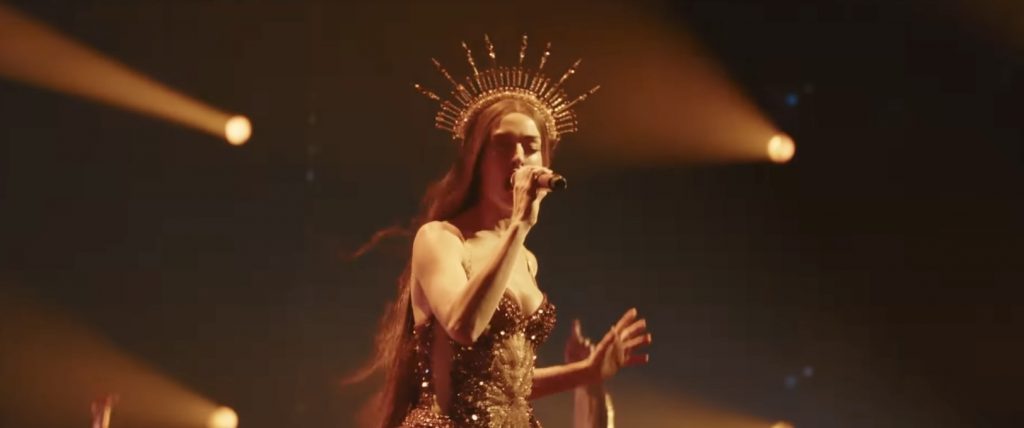 ВПЕЧАТЛЕНИЯ И АКТЕРЫ: будучи мировой поп-сенсацией, чьи сценические костюмы, богато украшенные нимбами, придают её образу вид сексуальной религиозной иконографии, певица с псевдо Мать Мария (Энн Хэтэуэй) является властным воплощением музыкальных суперзвезд от Тейлор Свифт и Бейонсе до Леди Гаги и Мадонны. Режиссер Дэвид Лоури, кстати, признавал, что фильм о стадионном туре Тейлор Свифт Reputation послужил для него ключевым источником вдохновения для концертных сцен. Но именно Микейла Коул, в роли Сэм Ансельм, эксцентричной британской дизайнерши, доминирует в фильме, к лучшему или к худшему. Сильные стороны «Матери Марии» в основном эстетические: от тщательно поставленных интерлюдий до призрачных, квази-ужасных событий, когда центральный па-де-де раскрывает все новые тайны.