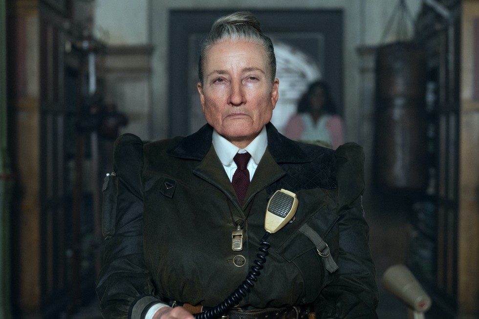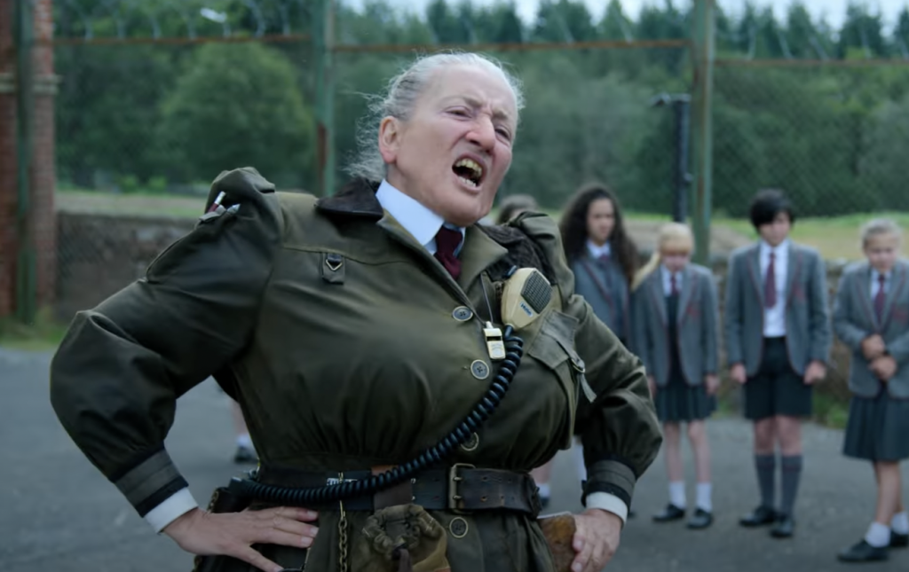 Эмма Томпсон в роли Агаты Транчбулл заменила предварительно выбранного Рэйфа Файнса (в спектакле эту роль традиционно играл мужчина). «Это не школа, это тюрьма», - пищит одна из одноклассниц Матильды, и художники-постановщики передают ужасающий воздух настоящего ГУЛАГа с вывесками и статуями в советском стиле. Например, во дворе стоит огромная и мрачная гранитная фигура, которая держит в руках молот и украшена лозунгом: «Не хныкать!». Это правило Транчбулл требует соблюдать, когда применяет телесные наказания, и добавляет: «У маленьких мальчиков уши не отрываются, они просто растягиваются». А ее собственные навыки спортсменки она показывает, когда хватает маленькую школьницу за косички и, раскрутившись, перебрасывает ее через стену как легкоатлетический молот. В отличие от ее эффектного костюма, такое в театральной постановке не покажешь.