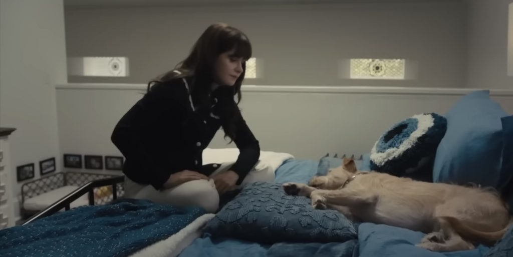 Что касается игры актеров, то Чарли Кокс (Сорвиголова из сериалов вселенной Marvel) демонстрирует завидную смелость, поскольку его герой постоянно совершает глупости. В его игре присутствует присущая Коксу самоирония, которая очаровательна и обеспечивает ему большую долю обаяния и химии для этой явно идеальной пары, переживающей кризис. Зои Дешанель, как всегда, привносит в происходящее определенную миллениальную эксцентричность, которая либо будет вам по душе, либо нет. Ее Анна немного суховатая и отстраненная, особенно в сравнении с печальной искренностью Кокса. Режисерша старается придать отношениям Анны и Расса достаточно веса, чтобы они нормально смотрелись в сценах без собаки, давшей название фильму. Есть причина, по которой они расстались, и было бы лучше, если бы ей дали больше времени, чтобы раскрыться, и объяснили бы это менее прямолинейно. Но эти двое идут на гораздо менее важные поступки и делают это гораздо более нелепым образом, чем то, что должно было бы произойти, чтобы у них состоялся откровенный разговор...