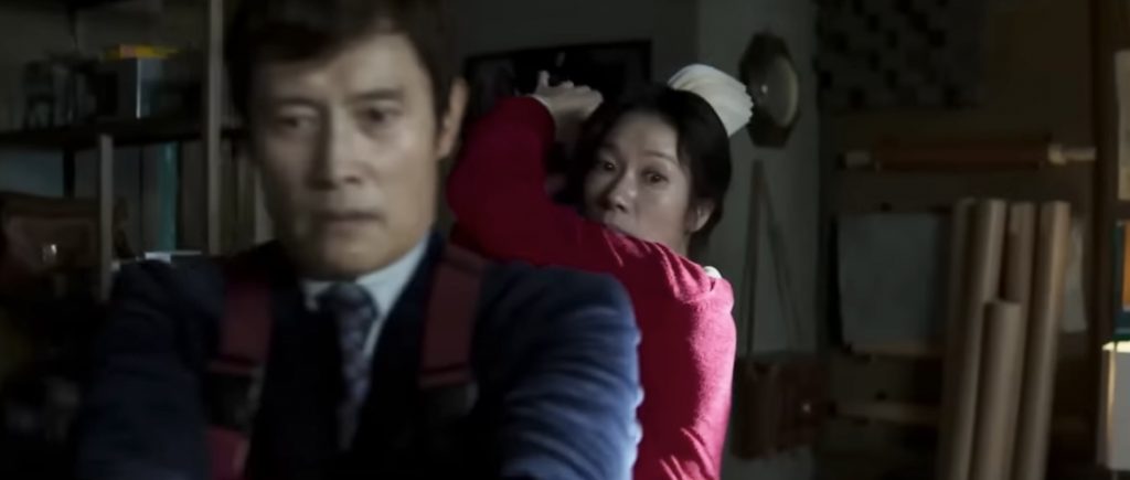 Ли Бён-хон, который ровно четверть века назад прославился в паковской «Объединенной зоне безопасности», а сейчас стал известен бессчетным миллионам как главный антагонист «Игры в кальмара» (о чем в фильме есть мимолетная шутка), - артист отнюдь не комедийного амплуа. Но в слэпстике неожиданно оказывается бесподобен: его благородным чертам, которые вдруг стали очень живыми, идет как планомерная озадаченность героя, так и его скорбная решимость. Ю - обыватель, которого общество подталкивает к поступкам, совершенно ему несвойственным, и логично, что выглядит он при этом тоже довольно абсурдно.