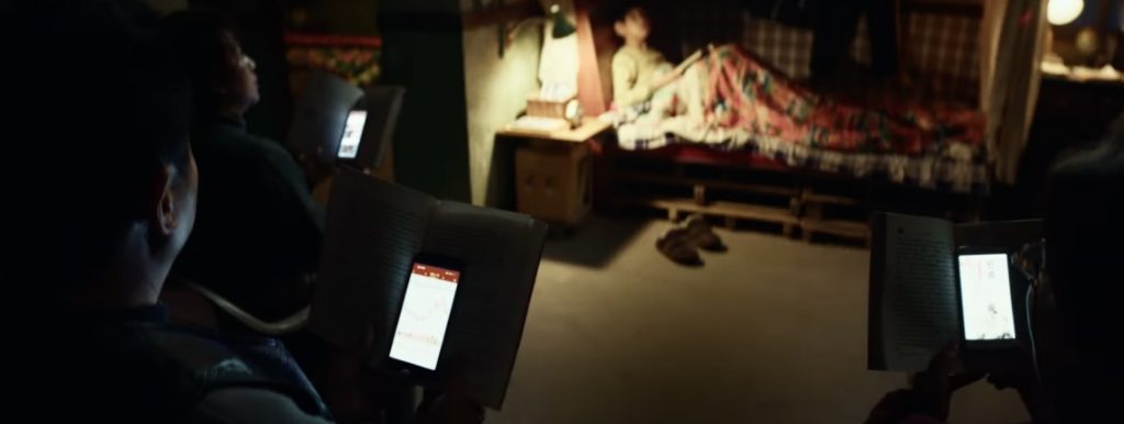 Мальчонка теперь бегает в школу, расположенную далеко от дома - так, чтобы он, бегая, похудел. Он ухаживает за прикованной к инвалидной коляске бабушкой, собирает на свалках пластиковые бутылки, выбирает на рынке продукты подешевле, родители тайком переправляют их скрытым в комоде лифтом команде поваров, которые по специальным рецептам готовят для отрока "бабушкину еду" - скудную, но полезную. А там, в современных хоромах, куда можно попасть из платяного шкафа, днем и ночью светятся мониторы, сканирующие каждый метр возможных маршрутов несчастного Джи, создаются прогнозы и графики, заседает штаб операции, куда стекаются все доклады о происходящем воспитательном процессе - кажется, весь мир опутан датчиками и шелестит уоки-токами.