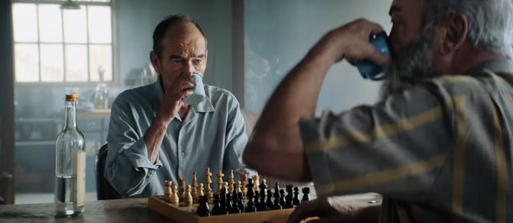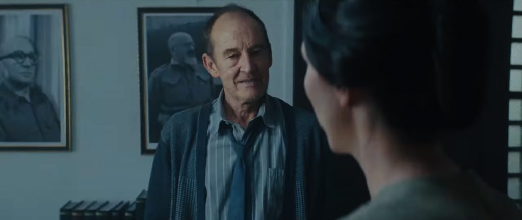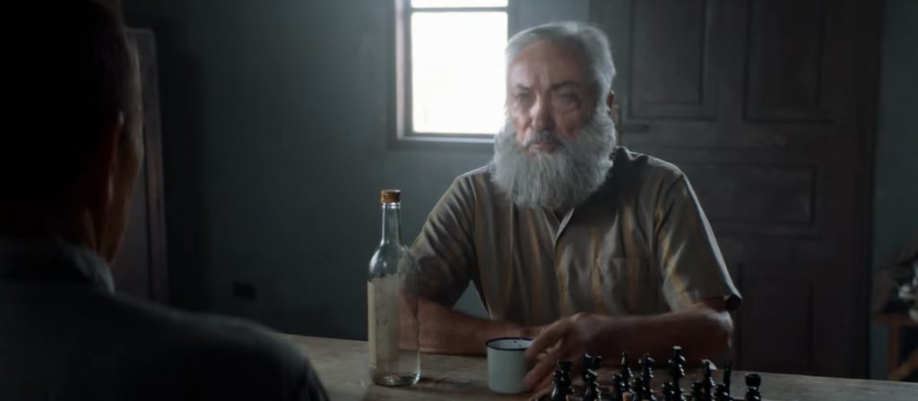 Хорошо хоть позднее фильм выглядит как серьезное, недорогое «Окно во двор» - Польски шпионит за Герцогом из окна с помощью телеобъектив, собирая улики для бездействующих властей. И когда видит, что сосед вынимает шахматную доску, Польски предлагает ему сыграть вместе (перед войной он играл с Гитлером в сеансе одновременной игры). Эти шахматные партии неожиданно сближают двух незнакомцев (вообще-то фюрер не был любителем шахмат. Но что говорить, если авторы чуть-чуть подправили фото Гитлера в учебнике, что Удо Кир был немного на него похож).