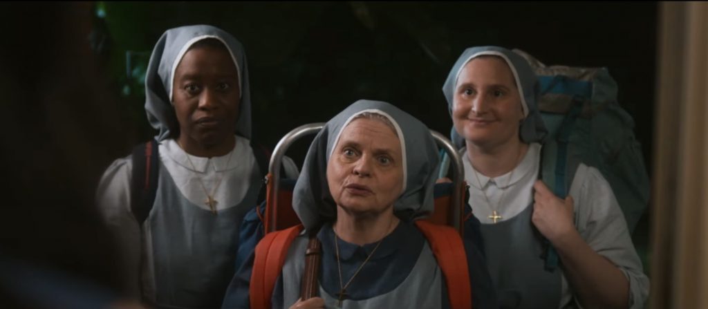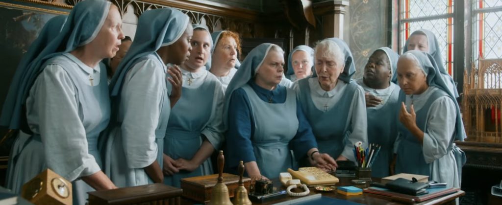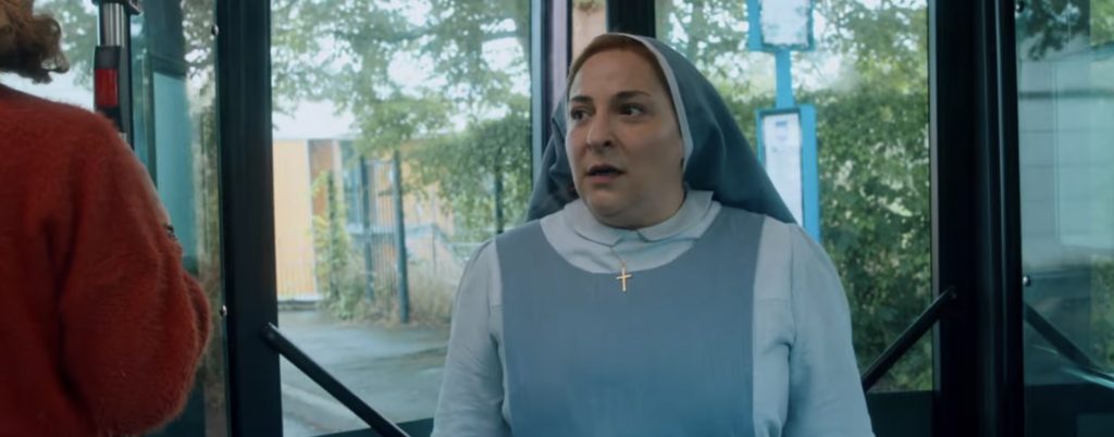 ВПЕЧАТЛЕНИЯ И АКТЕРЫ: фильм Фредерика Кирина можно разделить на три части. Первая часть, как и вторая, очень динамична, поскольку монашка Люси оказывается предоставленной самой себе в современном мире. Юмор строится на её дезориентации по отношению к современным реалиям: технологиям, одежде и даже знаковым событиям последних двух десятилетий, которые она с изумлением открывает для себя. Особо выделяются две повторяющиеся хохмы: одна связана с мобильным телефоном и его голосовым помощником, который сестра Люси воспринимает как божественный голос. Другая - с автоматическими дверями. Остальные комедийные моменты также удачны, особенно когда ей приходится переодеться и она оказывается похожей на Джулию Робертс из «Красотки», как и помогающие ей проститутки. Марилу Берри, конечно, напоминает Жозиан Беласко, но явно ей проигрывает, когда нужно выглядеть по-настоящему придурковатой.