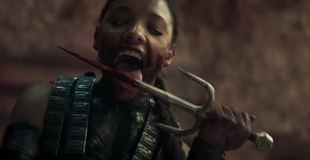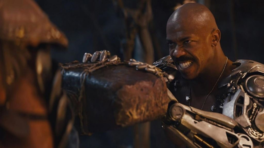 ВПЕЧАТЛЕНИЯ И АКТЕРЫ: если отвлечься от сюрреалистических элементов «Мортал Комбат», по сути это, конечно же, просто спортивное кино: героев вызывают в сборную Земли по рукопашному бою, они приезжают на базу, знакомятся с тренером (бог грома Райден), проходят экспресс-подготовку к будущему противнику и, наконец, выступают. Это понятная и работающая схема; первый «Мортал Комбат», как и другие бессчетные фильмы про восточные единоборства, был вдобавок без затей срисован с великого боевика «Входит дракон» с Брюсом Ли. Но даже такая нехитрая формула оказывается для новых авторов совершенно непостижимой. Кровавый японский пролог настраивает скорее на оптимистический лад, равно как попытки Сабзиро заморозить кафетерий, где Янг, только что избитый до полусмерти, как ни в чем не бывало отдыхает со своей красивой семьей. Однако силы у МакКуойда кончаются еще до первого фаталити: и дорога к храму под поп-культурные шутки Кано, и особенно Внешний мир уже сделаны в усталом ретростиле кабельного сайфай-канала.