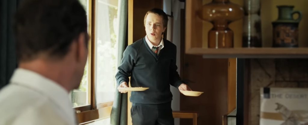 На домашнем фронте дела обстоят не лучше: однажды Ангус обнаруживает, что его мать по непонятной причине покинула их дом и уехала на две недели в мотель, оставив загадочную записку и двухнедельный запас полуфабрикатов. Он остается наедине с отцом Гордоном (Мартон Чокаш - «Властелин колец», «Царство небесное», «Превосходство Борна»), инженером-строителем, чья привычка к выпивке, по-видимому, оттолкнула жену. Мрачная атмосфера проясняется, когда старший брат Ангуса, который учится в колледже в Англии, отправляет ему посылку, включающую первый сингл Public Image Ltd. (группа Джона «Роттен» Лайдона, после того как он покинул после Sex Pistols). Когда Ангус ставит винил на проигрыватель, воздействие музыки оказывается таким, что изображение на экране переходит от академического формата к широкому.