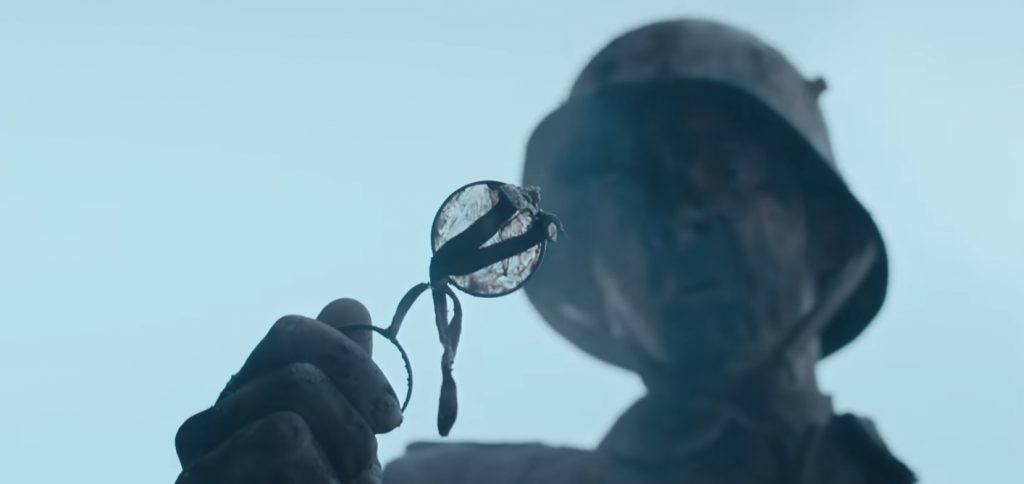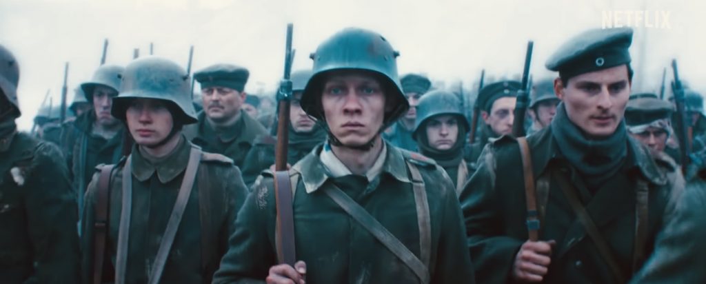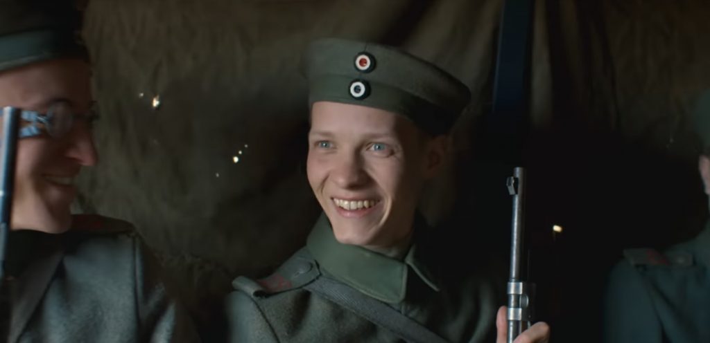 Сразу следует сказать, что в ремейке ничего нового не будет. И на этот раз первоначальная эйфория сменяется разочарованием и ужасом. Война ведь не только жестока, она ещё и бессмысленна: пока люди гибнут с обеих сторон, на линии фронта ничего существенного не меняется. И Эдвард Бергер смакует эту бессмысленность. В самом начале Паулю Боймеру (Феликс Каммерер) выдают форму, а внутри имя другого человека - смерть солдат является частью цикла.