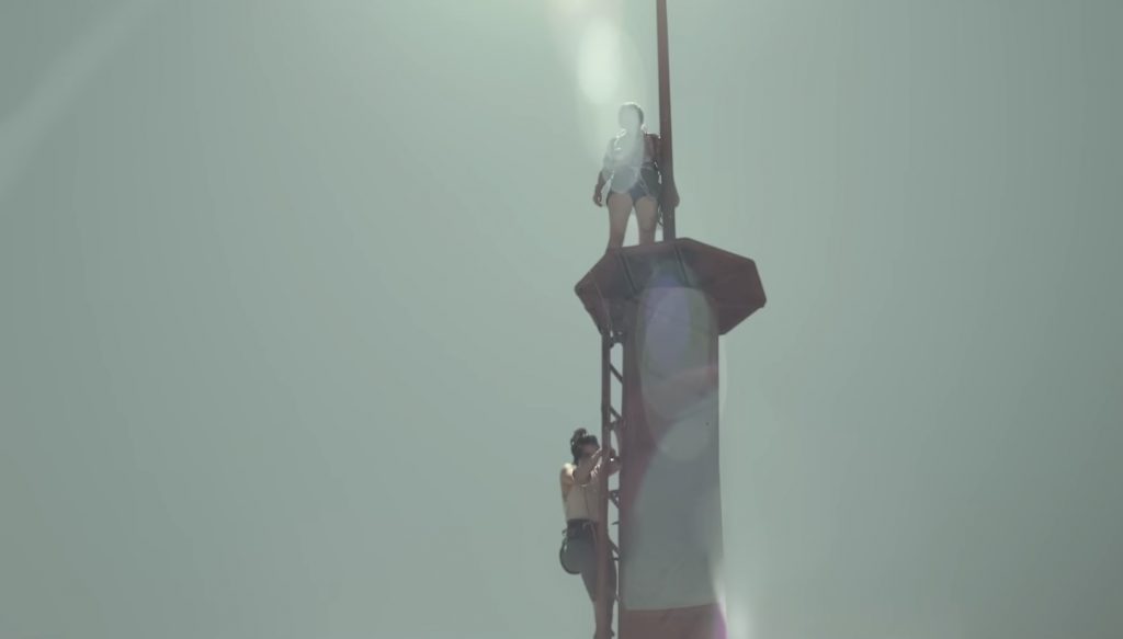 Лучшие сцены фильма - путь к вершине. Камера эффектно облетает экстремалок, и зритель чувствует не только страх падения, но и сильный ветер. Иммерсивность действия вызывает саспенс и заставляет почувствовать себя на высоте нескольких сотен метров. Можно даже закрыть глаза на корявые спецэффекты (бюджет у фильма небольшой), из-за которых прекрасно видно, что ни на какую вышку Бекки и Хантер не лезут, - весь фон дорисован. Почему-то на отметке в 600 м порывы ветра не сносят любительниц острых ощущений. Нет, складывается впечатление, что девушки так и остались на земле.