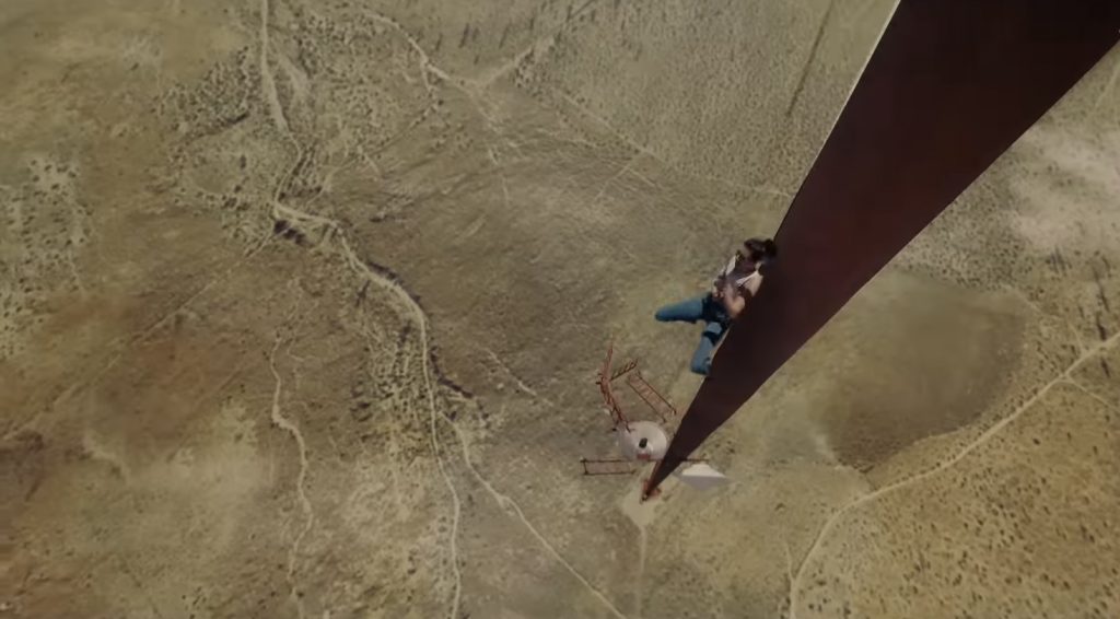 Лучшие сцены фильма - путь к вершине. Камера эффектно облетает экстремалок, и зритель чувствует не только страх падения, но и сильный ветер. Иммерсивность действия вызывает саспенс и заставляет почувствовать себя на высоте нескольких сотен метров. Можно даже закрыть глаза на корявые спецэффекты (бюджет у фильма небольшой), из-за которых прекрасно видно, что ни на какую вышку Бекки и Хантер не лезут, - весь фон дорисован. Почему-то на отметке в 600 м порывы ветра не сносят любительниц острых ощущений. Нет, складывается впечатление, что девушки так и остались на земле.