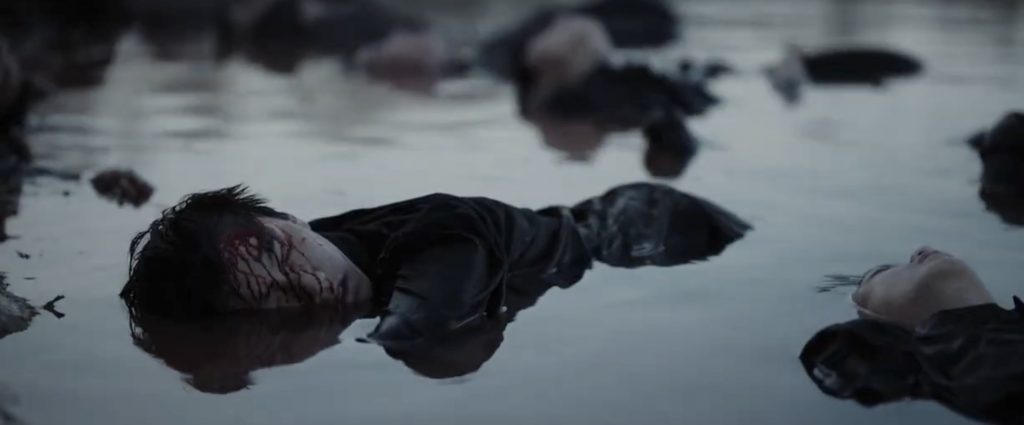 И если бы просто истребили. Шэнь Ао ни в чем себе не отказывает, демонстрируя адские мизансцены превратившегося в колоссальный морг города. Чудовищных масштабов массовые изнасилования. Расстрелы тысяч людей на берегу Янцзы, воды которой буквально покраснели от крови, под декламацию свежесочиненных генералами-поэтами хокку. Да если бы просто расстрелы. Людей заживо жгут из огнеметов, топят, засунув в мешки, используют как «чучела» для обучения штыковому бою. Офицеры соревнуются, кто из них быстрее отрубит больше китайских голов. Младенцу разбивают голову об асфальт, чтобы всучить трупик женщине, позирующей для пропагандистской фотографии во славу «японо-китайской дружбы».