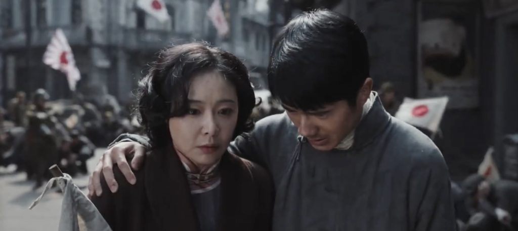 Скажи китайцу «Нанкин», он тут же отзовется: «Нанкинская резня». 13 декабря 1937 года японские войска взяли штурмом Нанкин, столицу Китайской Республики. Изрешеченный пулями колоссальный портрет ее президента Чан Кайши мелькнет в кадре, а расстрел гоминьдановскими заградотрядами толпы дезертиров и мирных жителей, пытающихся вырваться из города,- один из ударных эпизодов фильма.