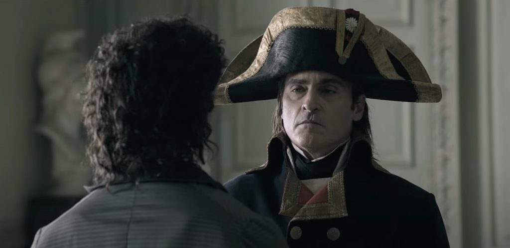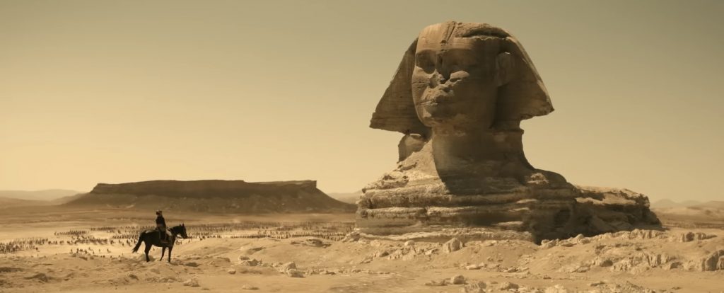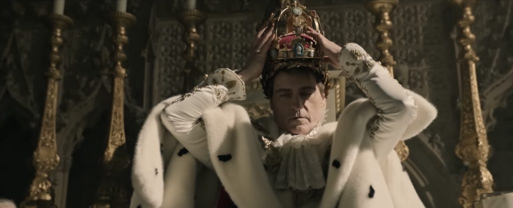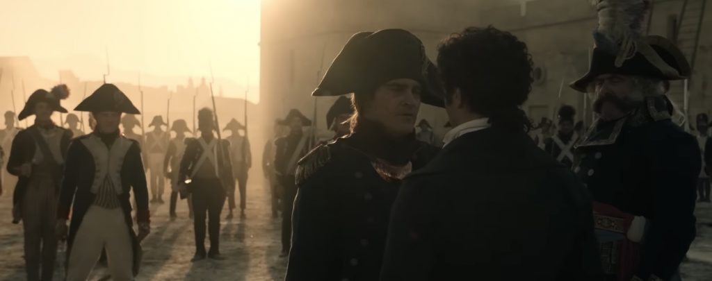 Ридли Скотт прослеживает карьеру Наполеона с тех пор, как тот был многообещающим молодым офицером, ставшим свидетелем гильотинирования Марии-Антуанетты (одно из многих поэтических допущений сценария), до его ссылки на остров Святой Елены. Всякий раз, когда режиссер и его главный герой оказываются на поле боя, этот фильм напоминает, каким талантом эпического уровня обладает Скотт. Он организует потрясающе сложные сцены таким образом, что мы можем интуитивно понять общую стратегию, даже несмотря на то, что он шокирует нас ужасающими деталями, такими как барабанщик, испарившийся после попадания в него из пушки, или огромная армия, которая отправляется прямо на дно замерзшего озера в битве при Аустерлиц.