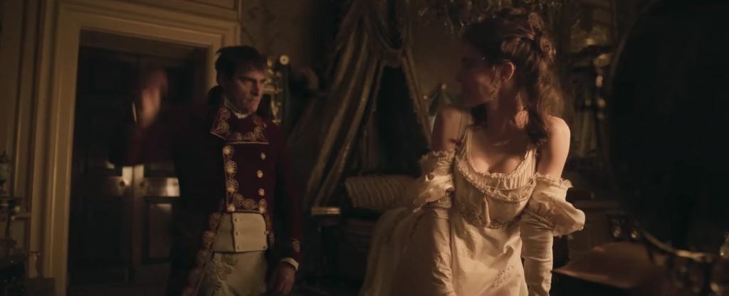 Тем не менее, иногда зрителям захочется заглянуть в учебник истории для объяснения чего-то столь фундаментального, как, например, почему французский диктатор вообще ведет войну. Во многом ответственность за эту путаницу несет Хоакин Феникс, поскольку он подчиняет культового персонажа своему устоявшемуся образу: неуверенному в себе, асоциальному ребенку мужского пола - что, по меньшей мере, является неожиданным взглядом на императора. В сцене коронации и в эпизоде с британским послом Бонапрарт вдруг напоминает жуткого юного Коммода из «Гладиатора». Феникс играет Наполеона сквозь три десятилетия, но становится похожим на него только ближе к концу - просто начинает выглядеть все более коренастым и небритым. Иные могли бы представить Наполеона мечтательным одиночкой, но для Скотта он половина разгульной властной пары - страстно и безнадежно влюблен в прагматично-чувственную Жозефину в исполнении Ванессы Кирби. А у нее, кажется, есть одно желание - взять под свой контроль самого крутого мужчину в мире; их первое общение заканчивается тем, что Жозефина задирает платье и указывает ему на свое влагалище. Этого достаточно, чтобы зрители захотели более полно ознакомиться с играми этих двух моральных уродов. Сексуальные сцены между ними разыгрываются ради смеха. Кажется, англосакс Скотт потешается, наблюдая, как будущий император французов яростно долбит кого-то сзади, а Жозефина встречается с любовником через восемь секунд после отъезда Бонапарта в Египет. Она умерла за семь лет до Наполеона, но последнее слово в этом фильме остается за Жозефиной - хотя название картины отнюдь не «Богарне»…