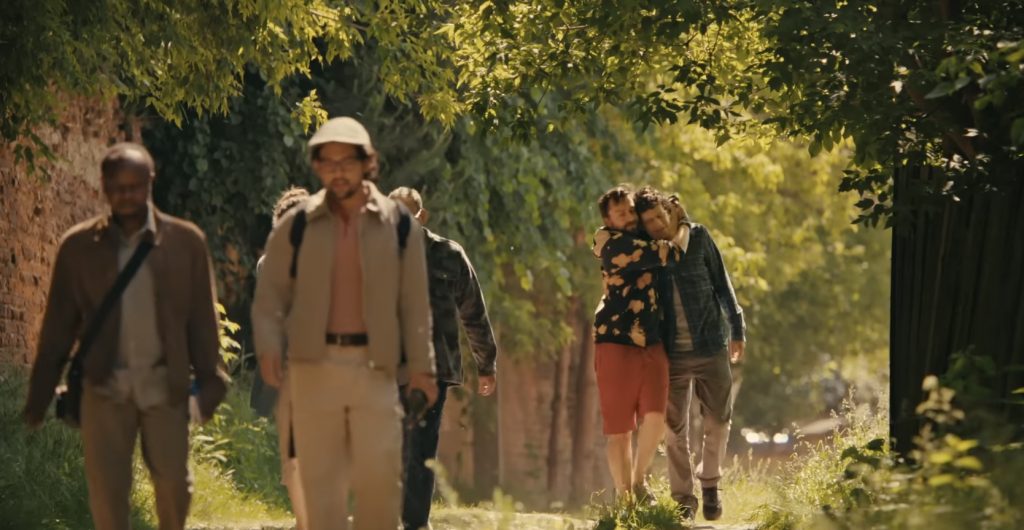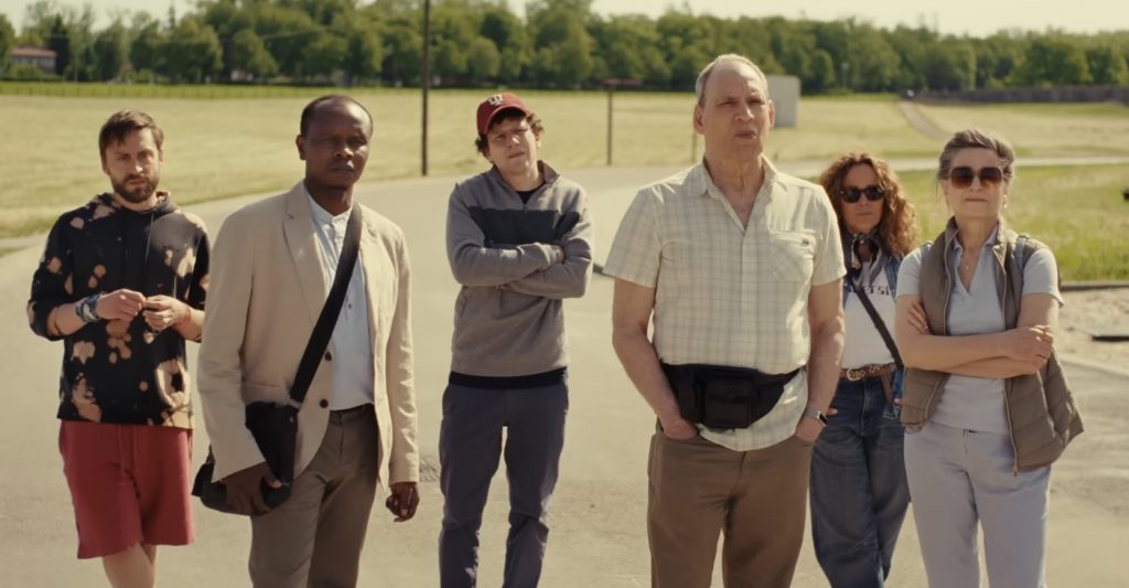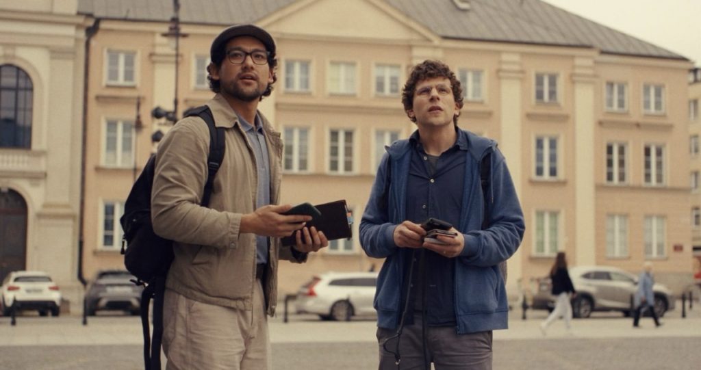 Проводником группы туристов по Польше становится экскурсовод-ученый из Великобритании Джеймс (Уилл Шарп), который не принадлежит к еврейскому народу и постоянно сыплет фактами разной степени полезности. В один момент Бенджи срывается и критикует Джеймса, объясняя, что о трагедии надо рассказывать человеческим языком, только так можно понять чужую боль. Вторит герою сам Джесси Айзенберг, выбирая интонацию фильма: братья постоянно шутят и прикалываются, попадают в неприятности. Жанр бадди-муви, являющийся ключевым в картине, будто должен отвлечь зрителя от того, что режиссер попал в ловушку. Как бы Айзенберг ни хотел сделать разговор о Холокосте искренним и бороться с клише, его кино напоминает экскурсию с учителем истории, которому порой удается заткнуть громких учеников и заставить «задуматься о важном». Безоружность режиссуры в сценах, где кузены посещают концлагерь, можно понять, но если поставил перед собой цель избегать штампов и назидательного тона, то лучше идти до конца.