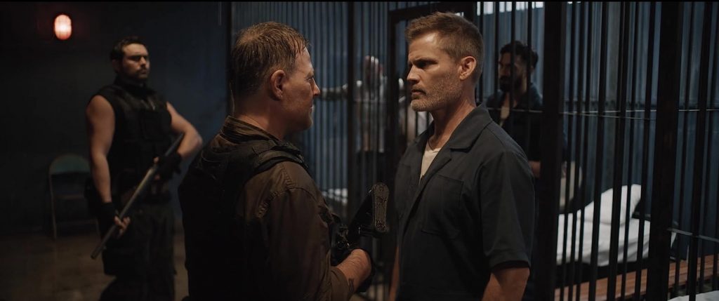 Большая часть действия происходит в ветхой тюрьме маленького городка под управлением шерифа Джо Ньюман (Никки Уилан). Четверо гигантских зверей пробрались сюда через воздуховоды и совсем скоро их невольно потревожили около полдюжины крепких убийц-социопатов, которых перевозили из одной тюрьмы в другую. Их автобус был вынужден остановиться из-за шторма, а где-то рядом рыщут друзья заключённых, во главе с Рэйфом (Луис Мэндилор) желающие их освободить. Такую завязку одобрил бы Джон Карпентер (автор «Нападения на 13-й участок»), и это явно пошло на пользу картине Брэндона Слэгла - даже фильм об аллигаторах не может быть посвящен только их кровавым деяниям. В «Капкане» камера больше внимания уделяла не симпотной Кае Скоделарио, а жутким рептилиям, что вскоре начинало надоедать.