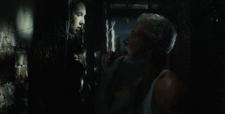 ВПЕЧАТЛЕНИЯ И АКТЕРЫ: достаточно скромный по бюджету, без звёзд в актёрском составе, фильм «Не дыши» Феде Альвареса неожиданно собрал в прокате 160 млн.$. В 2017 году картина стала лауреатом премии «Сатурн» за «Лучший фильм ужасов». Помимо проблем с пандемией, трудно понять, почему продолжение столь успешного фильма выходит так много лет спустя, но помимо этого, сиквел включает в себя несколько ключевых изменений. Феде Альварес больше не режиссер и его заменил соавтор сценария, Родолфо Саягес. Другое ключевое отличие состоит в том, что герой Стивена Лэнга, просто «Слепой», получил теперь имя - Норман Нордстром и, несмотря на некоторые факторы, он теперь более или менее хороший парень, как Джон Рэмбо. Особенно, на фоне банды головорезов, которые проникли в его дом с целью похитить удочерённую Норманом после пожара Феникс (Мэделин Грейс). Выглядят они как немытые подонки, которые не столько улыбаются, сколько приоткрывают губы и обнажают блестящие зубы. Герой Стивена Лэнга, худой и мускулистый, с седыми волосами, бородой и в грязной майке, все так же неотразим. Сейчас Лэнгу 69 лет, и он играет Нордстрема как сломленного человека, мучения которого придают ему особую силу. Его постоянно бьют и режут, но он возвращается и продолжает сражаться. В конце концов зрители почувствуют что из Нордстрема делают мифологическую фигуру (есть даже тизер после титров). Его избивают снова и снова и никак не могут добить, но даже тогда он выглядит готовым принять последний бой. «Слепой» в сиквеле выглядит более чувствительным, но он сочувствует точно так же, как и Франкенштейн, в том смысле, что он страшен и опасен, и вам немного жаль его, потому что Нордстрем просто защищает свою подопечную.