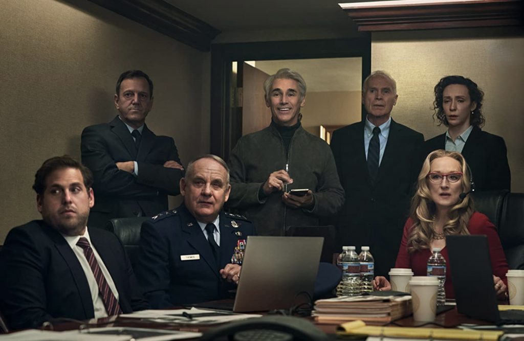 О ЧЕМ КИНО: наблюдая за движущимися объектами в ночном небе, аспирантка Кейт Дибиаски (Дженнифер Лоуренс) обнаруживает большую комету в солнечной системе, которая направляется прямо к Земле и уничтожит ее приблизительно через шесть месяцев. Вместе со своим научным руководителем, профессором Мичиганского Университета Рэндаллом Минди (Леонардо Ди Каприо) они обращаются к доктору Клейтону Оглторпу (Роб Морган) руководителю отдела космической защиты. Оглторп организует им встречу с президентом США Джен Орлеан (Мэрил Стрип), но она не видит особой опасности и предлагает «помалкивать и размышлять…». Не видит опасности и Джейсон Орлеан (Джона Хилл) глава аппарата Белого дома и, по совместительству, ее сын. А глава технологической компании BASH, миллиардер Питер Айшеруэлл (Марк Райлэнс) вообще считает, что комету нужно использовать в коммерческих целях и добыть сырья на 140 миллиардов долларов. И тогда трое ученых решают обнародовать информацию самостоятельно. Но даже в телешоу The Daily Rip ведущих  Бри Ивэнти  (Кейт Бланшетт) и Джека Бреммера (Тайлер Перри) ситуация не воспринимается серьезно…