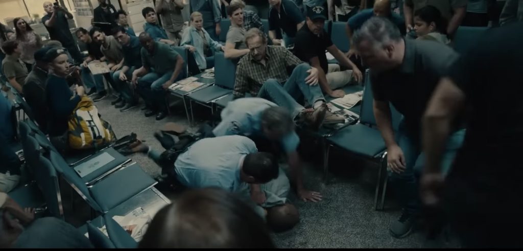 Брайан, ветеран морской пехоты (!), показан как человек, который и мухи не обидит (?) - он позволяет выйти из здания практически всем, кроме двух менеджеров, Эстель (Николь Бехари - «Стыд», бывшая девушка Майкла Фассбендера) и Розы (Селенис Лейва). Их страх постепенно превращается в сочувствие. Также сочувствуют Брайану телепродюсер Лайза (Конни Бриттон - «Дальше живите сами») и даже переговорщик Илай Бернард (последняя роль Майкла Кеннета Уильямса умершего в 2021 году). У него, тоже бывшего морского пехотинца, возникает человеческая связь с Брайаном.