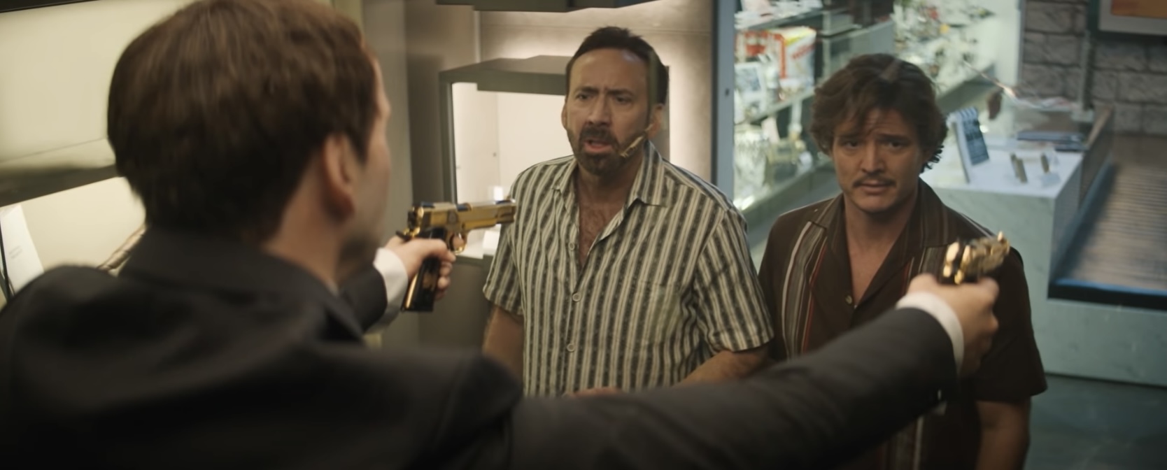 Фильмография актера настолько обширна и многообразна, что режиссеру не составляет труда, и даже доставляет удовольствие, наполнить свою картину множеством отсылок и «пасхалок». Сцена, в которой Хави делится личной историей о том, как комедия «Телохранитель Тэсс» 1994 года помогла ему наладить отношения с умирающим отцом, забавна, но она также показывает, как иной фильм может преобразить жизнь. Даже агенты ЦРУ, которым поручено уничтожить криминальную империю Хави (их с комической серьезностью сыграли Тиффани Хэддиш и Айк Баринхолц), имеют разные точки отсчета, когда замечают Кейджа в аэропорту.