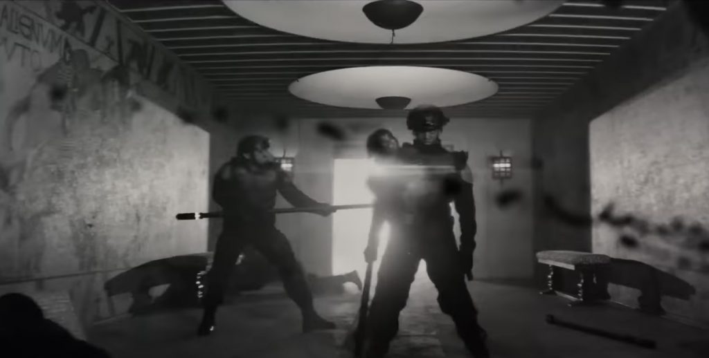 Однако Джаккино не полностью уводит «Ночного оборотня» в ужасы и оставляет характерные для кино Marvel динамичные сцены боя с противниками, которых не могло быть в монотонных старых хоррорах. С того момента, когда начинается охота за монстров, лента полностью сосредотачивается на эффектных сражениях, в которых охотники готовы убить друг друга, лишь бы заполучить Бладстоун. Эта затянувшаяся битва, к которой позже присоединяется взбесившейся оборотень, разрушает всю винтажную магию черно-белых хорроров, которая буквально гипнотизировала зрителя первые двадцать минут. В спецвыпуске жестокость, которой обычно много в фильмах ужасов про вервольфов, сглаживается с помощью элегантных переходов к черной комедии. Но парочку кровавых сцен, вдохновленных «Проклятием оборотня», Джаккино все же оставляет на десерт.