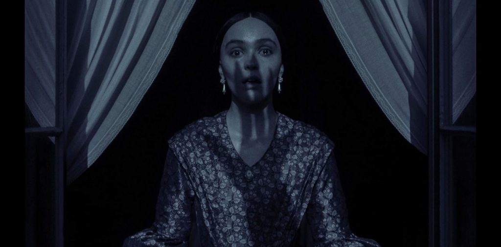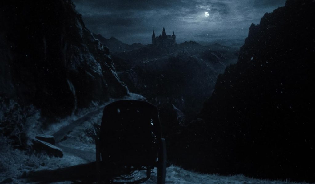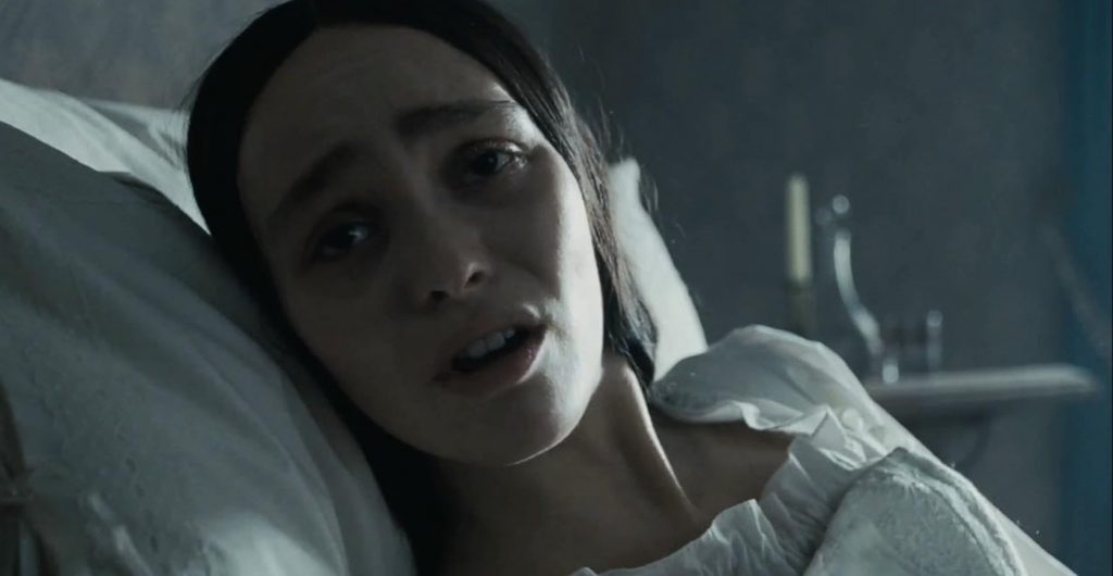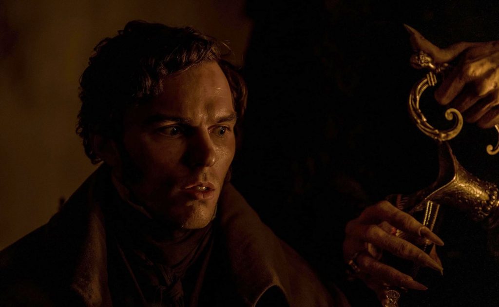 Общую канву вы знаете. Молодой честолюбивый агент по недвижимости Томас Хуттер (Николас Холт, только что представший в диаметрально противоположной роли в «Присяжном номер два») отправляется в Карпаты по требованию своего босса Кнока (свою роль корифей британского театра Саймон Макберни играет с извращенным наслаждением). Там Хуттеру предстоит заключить сделку с эксцентричным графом Орлоком, собравшимся купить в Висборге полуразрушенный замок. На самом деле Орлока интересует лишь юная жена Томаса - сомнамбулическая Элен (прорывная и откровенная роль Лили-Роуз Депп, главной звезды фильма).