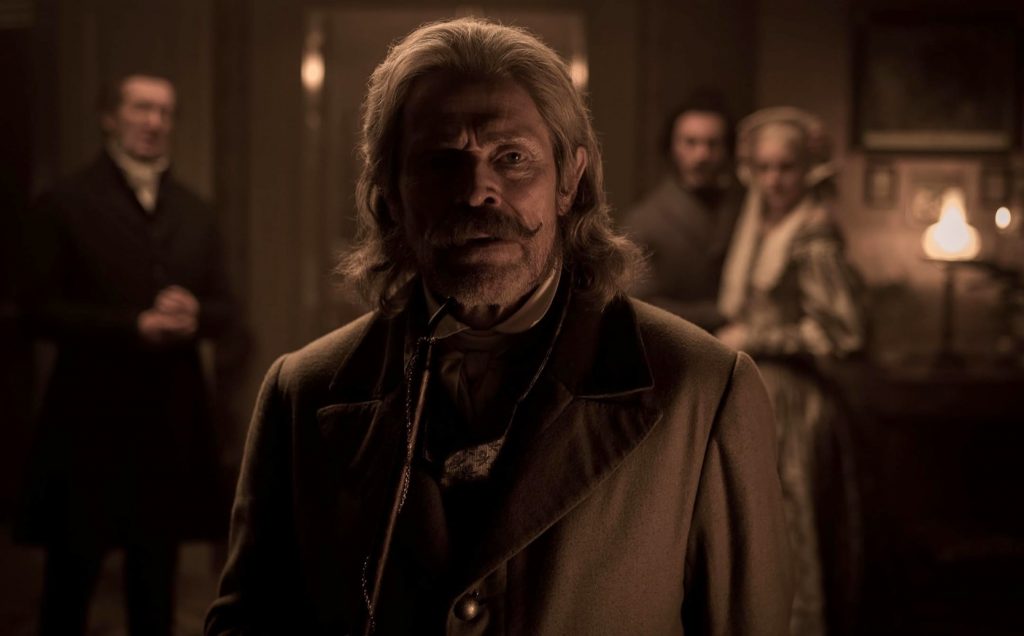Пиком «Носферату» становится ожидаемое и предсказанное, но все равно шокирующее явление Орлока, сыгранного неузнаваемым в гриме Биллом Скарсгардом (даже в облике его клоуна Пеннивайза просматривалось больше человеческого). Трансильванский граф с его глухим размеренным басом неожиданно напоминает казака-зомби из «Вия» (2014) - фильма никчемного по части драматургии и режиссуры, но впечатляющего визуально. Чуб на голове и длинные усы, развитая мускулатура и пронзительные жгущие глаза - кто же это, восставший из преисподней Тарас Бульба или проклятый колдун из «Страшной мести», самого пугающего текста Гоголя? Так или иначе, шаблон сломан, управляющий волками и крысами Орлок - восхитительный монстр, ничуть не похожий на притягательных вампиров голливудского производства.