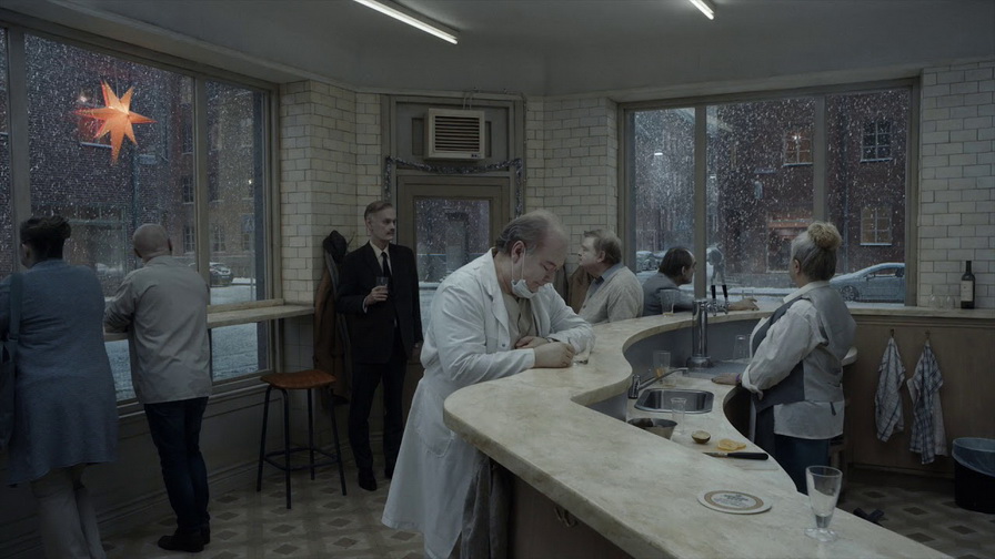 Это снова калейдоскоп мини-сюжетов, но теперь они больше напоминают статичные фото, где неподвижная камера снимает неподвижных людей уже без парадоксов, умысла и фиги в кармане. Вот пожилая пара сидит на скамейке в деревянных позах, любуясь расстилающимся внизу городом. Вот священник пришел к врачу, потому что не верит в бога, и его мучают кошмары. Вот девушка сошла с поезда, а ее никто не встретил. Вот сам Гитлер вошел в бункер, где пьяные офицеры оцепенело взирают на осыпающийся под бомбами потолок. Вот папа ведет дочь на свадьбу, но пошел дождик.