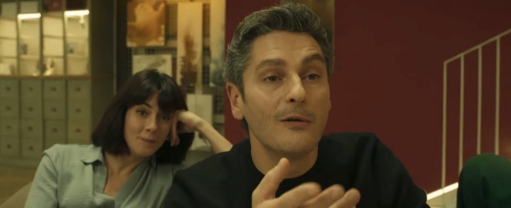 Три семейные пары приходят на сеанс групповой терапии в кабинет некой Антонии. На стенах - модные фотоработы, на столе - ассортимент горячительных напитков. Не хватает сущего пустяка - самого психотерапевта. Только на блюде лежат пронумерованные конверты с восьмью заданиями, которые герои должны выполнить. Представиться, рассказать об истории знакомства и планах на будущее, любимых сексуальных позах и степени собственной ревнивости. Исполнив каждое из заданий, следует протрубить в прилагающийся к конвертам горн. Что за пионерская чушь эта деталь, не понять. Горн обыгрывается только один раз, когда его угрожают засунуть одному из пациентов понятно куда, и робкая вспышка анального юмора приятно разбавляет экранную тоску.