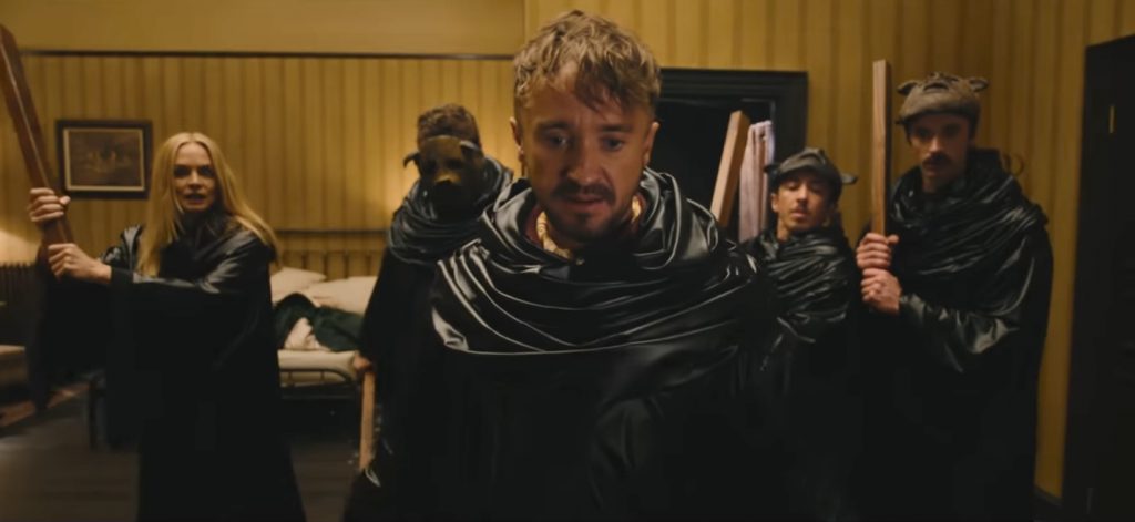 ВПЕЧАТЛЕНИЯ И АКТЕРЫ: новый фильм Кирилла Соколова сравнивали с «Я иду искать» еще до выхода на экраны. Здесь смешаны две ходовые идеи - сатанинские культы и «сожри богатых» - в откровенно безумном сценарии, с одними из самых невероятных экшн-сцен, которые вы, вероятно, увидите в этом году. Но хоррор «Они тебя убьют» достаточно оригинален, чтобы вызвать неподдельный интерес зрителей. Кирилл Соколов не только выступил в роли режиссёра, но и дебютировал в Голливуде в качестве соавтора сценария вместе с Алексом Литваком. Хотя сюжет очень похож на «Я иду искать», особенно в плане «сожри богатых», «Они убьют тебя» быстро выделяется как нечто самостоятельное, погружаясь в полный хаос. Напряженные экшн-сцены поставлены превосходно, с несколькими выдающимися трюками, которые действительно радуют глаз. С самого начала они наполнены громкими звуками и реками крови.