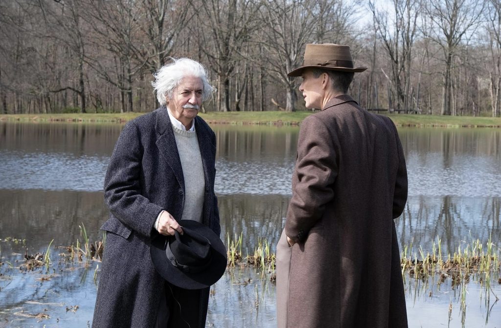 Сам Оппенгеймер, соответствуя эпохе, слушает Стравинского, любуется Пикассо, читает «Бесплодную землю» Томаса Стернза Элиота. В этом ряду он ощущает себя не менее органично, чем рядом с Альбертом Эйнштейном (Том Конти), Нильсом Бором (Кеннет Брана), Эдвардом Теллером (Бенни Сэфди), Исидором Айзеком Раби (Дэвид Крамхолц) и другими важнейшими учеными XX века. Нолан не оставляет сомнений: то, чем заняты и одержимы они все, начиная с Оппенгеймера, - тоже творчество. Именно поэтому, отдавшись процессу, они просто не могут подумать о результате. Последствия буквально ослепляют и сбивают с ног, заражая своих создателей чувствами вины и ответственности (серьезного различия между ними Нолан не делает).