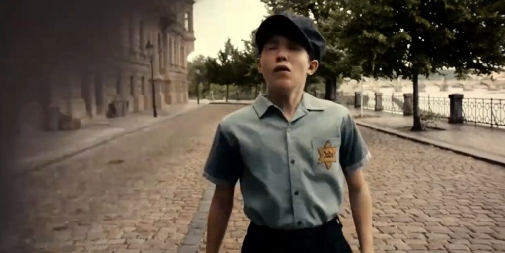 На первый взгляд, эта современная структура кажется неуместной для фильма, который хочет снять Финн Тейлор. Ведь он переносит зрителей в Прагу в то время, когда там начинали появляться нацисты, а Герберт был еще молод, Однако призрак смерти и связанные с ним сюжетные возможности постоянно витали над фильмами Тейлора с тех пор, как в его первом фильме «Повелитель рыб» был использован сюжет, в котором безнадежный главный герой оказывается на грани самоубийства. Впоследствии режиссер стал естественным выбором для того, чтобы снять фильм «Премия Дарвина» о самых глупых способах умереть. В этом контексте немного терпения к неуклюжей завязке стоит того, когда «Оптимист» оказывается необычайно глубоким размышлением о чувстве вины выжившего, в равной степени посвященным тому, как Эбби открывается Герберту после травмирующего события, и как он открывается ей. «Если ты расскажешь мне о своем шраме, я расскажу тебе и о своем», - несколько неуверенно обещает Эбби, когда Герберт впервые садится напротив нее, заметив зашитый разрез на ее шее. Как только они начинают общаться, смысл разговора теряется, как и тот факт, что Лэнг кажется слишком молодым для пережившего Холокост, даже несмотря на то, что действие фильма происходит в 2004 году. Обращаясь к тем же миллениалам, которых больше тронул, чем ужаснул, первый поцелуй Хейзел и Гаса на чердаке, где пряталась Анна Франк в фильме «Виноваты звезды», «Оптимист» не принижает серьезность своей темы, но и не считает священными прошлые трактовки этой истории. Тейлор и оператор Александр Суркала снимают сцены, происходящие во время Холокоста, гораздо менее торжественно, чем их предшественники, создавая ощущение, что вина постоянно преследует Герберта (Люк Дэвид Блум в детстве). Его отец (Славко Собин) убежден в том, что Чехословакия не падет под натиском нацистов, и прежде чем он успевает что-либо понять, его жена (Стелла Стокер) начинает пришивать желтые звезды Давида на их одежду.